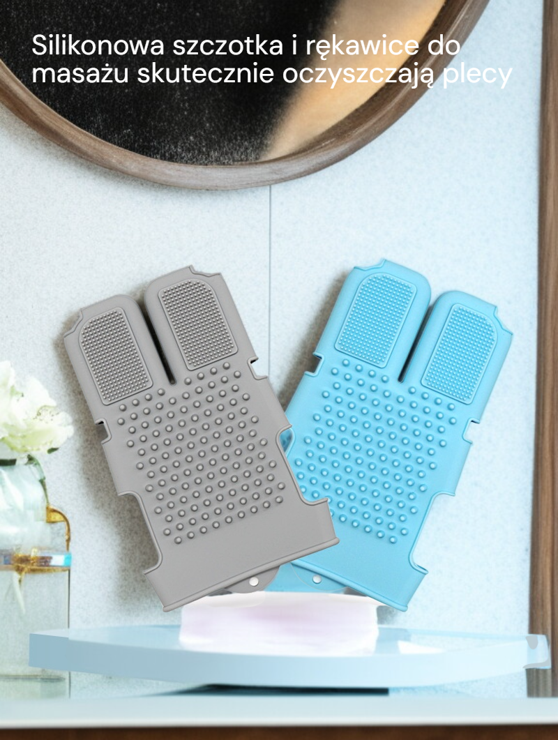 Silikonowa szczotka i rękawice do kąpieli – masażer do pleców