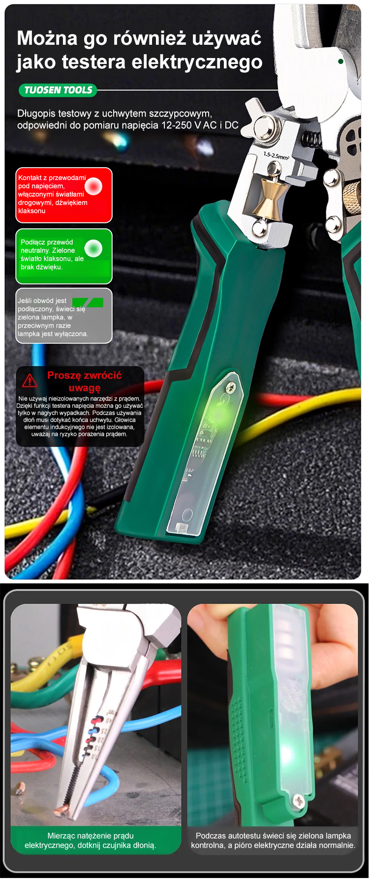 【Dziesięć w jednym】Wielofunkcyjne szczypce do testowania napięcia i ściągania izolacji