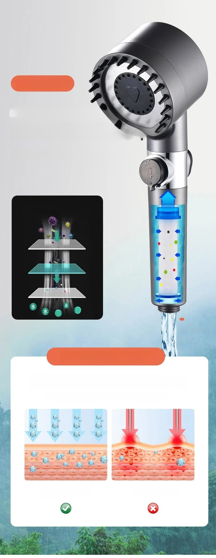 💦Filtruje rdzę i zanieczyszczenia, sprawiając, że woda do kąpieli jest czystsza.