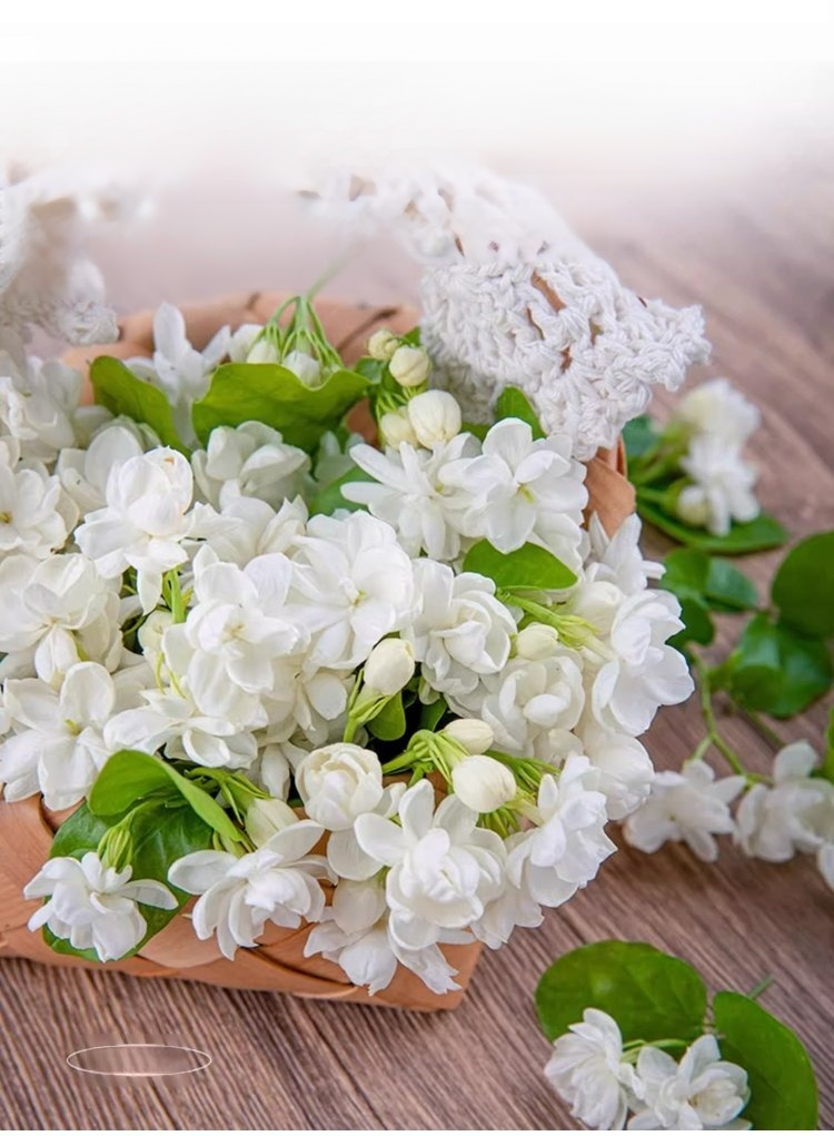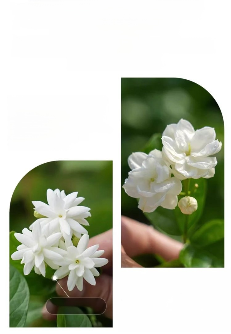 🌿Podwójnie płatkowany jaśmin pachnie jeszcze lepiej niż perfumy🌱Kwitnie o każdej porze roku! Nadaje się do sadzenia w pomieszczeniach i na balkonach.🌷Odporna na zimno i suszę, bardzo łatwa w uprawie🌳Płatki są ułożone warstwowo, a zapach jest bogaty i długotrwały.